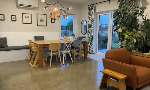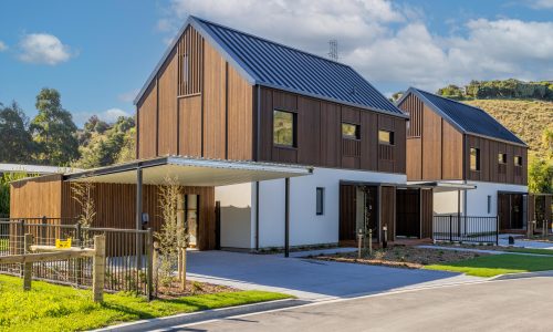 A unique warm, healthy home suited perfectly to the families it belongs too. Kathleen and Doug have a lovely one bedroom home, their living/dining area opens up to a deck with pergola where they can soak up the morning sun. Separated from their younger family by a shared laundry Brie and Thomas are raising their children in a three bedroom home. Their outdoor area is covered and setback into the footprint of their home accessible through three sliders, its fondly referred to as the gin room.