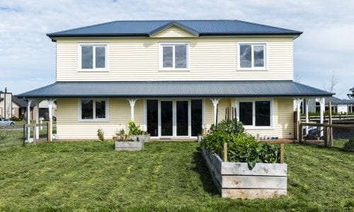Chris and Dominica’s forever home is on the outskirts of Christchurch. This 1870’s colonial style, high performance home has a wrap around verandah, matai tongue and groove flooring, recycled rimu doors and an elegant bespoke timber staircase.